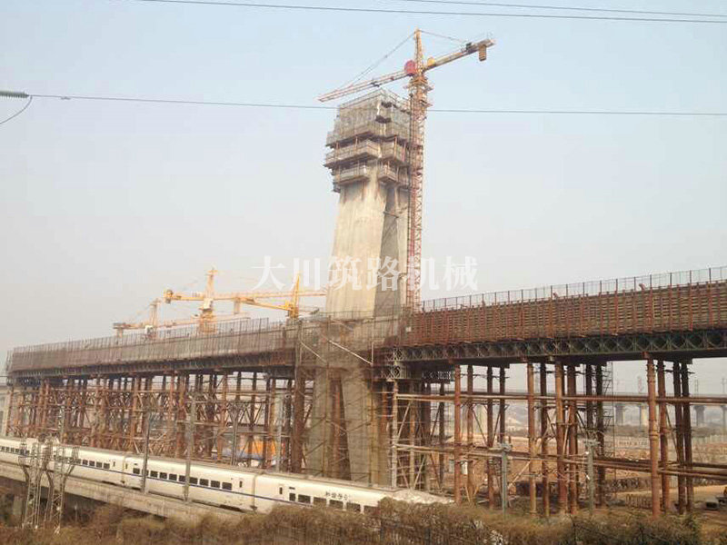 特點(diǎn):因滬昆高鐵跨過(guò)武廣高鐵,為了減少對(duì)武方高鐵的正常運(yùn)行,主梁和武方高鐵平行澆筑,然后懸轉(zhuǎn)跨越武廣高鐵,在當(dāng)時(shí)引起全國(guó)同行關(guān)注。使用的貝雷片數(shù)量達(dá)到2000片以上,于2011年12月投入使用。